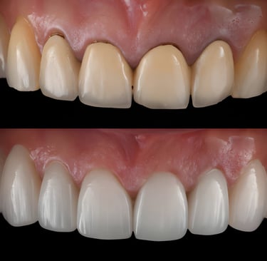 We don't just "guess" what your new smile will look like. At Olīva Dental, Dr. Dhirender J uses Digital Smile Design. We take photos and scans of your face, and digitally plan your new smile before we even touch your teeth. You can see the "After" photo before we start the "Before" treatment.